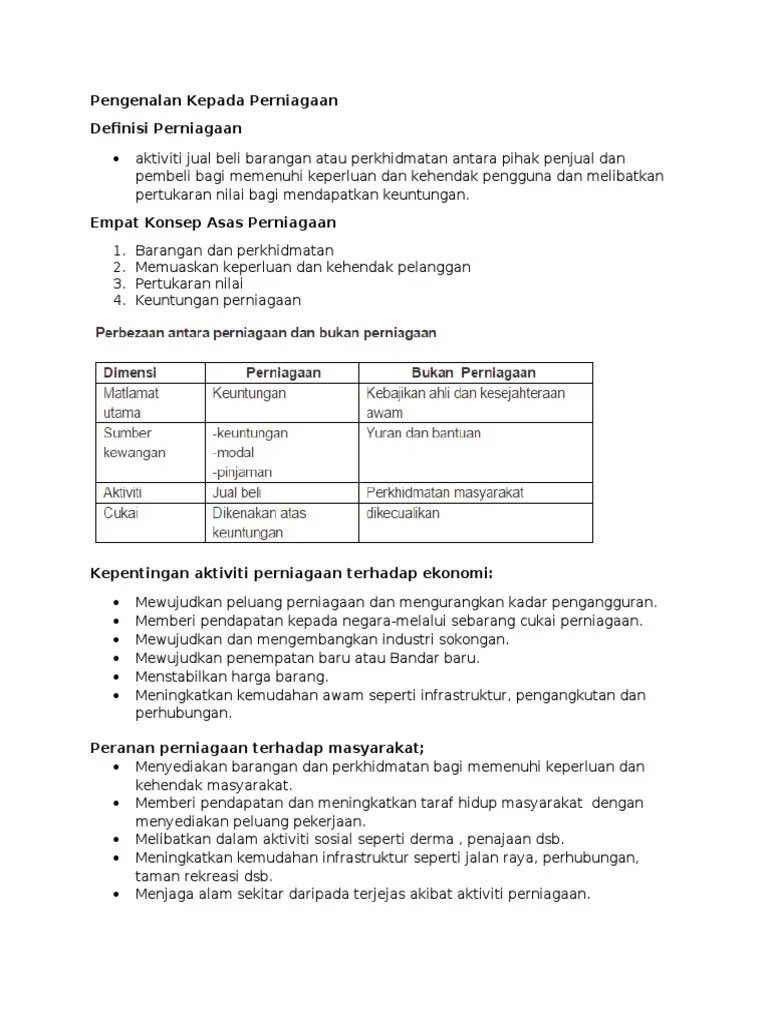 Kepentingan konsep asas perniagaan kepada bakal usahawan aplikasi daripada konsep ini berlaku bilamana syarikat takaful bertindak sebagai . Since the question is in the malay language, the answer has also been given in the malay language. (a) (b) (c) (d) (e) 4 berikan dua perbezaan antara keperluan dengan . Nyatakan lima kepentingan konsep asas perniagaan kepada bakal usahawan ?. Bab 7 ting 5 flip ebook pages 1 50 anyflip anyflip. 3 nyatakan lima kepentingan konsep asas perniagaan kepada bakal usahawan.